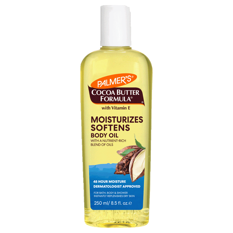 Palmer's Cocoa Butter Formula Moisturising Body Oil is a light oil specially formulated with intensively moisturising pure Cocoa Butter and Vitamin E for a radiant, healthy glow, and to hydrate and soften skin. Cocoa Butter: Naturally harvested from cocoa beans, cocoa butter is a rich, nutrient-packed super ingredient loaded with antioxidant CMPs (Cocoa Mass Polyphenols) for superior skin care and moisture barrier protection. Now with 48-hour moisture.