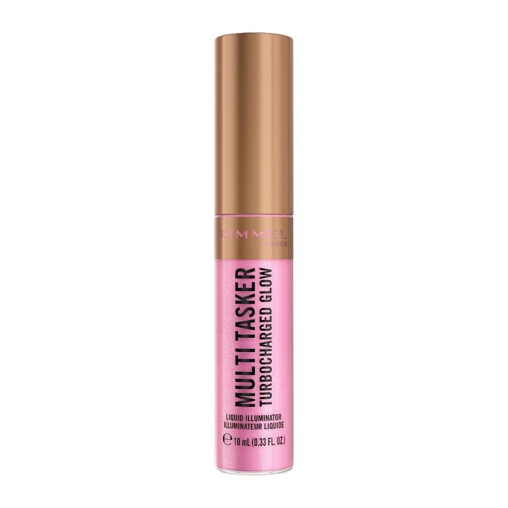 Rimmel Multi-Tasker Turbocharged Glow Liquid Illuminator, turbocharged with light-reflecting pearls and Vitamin C and E. For a healthy, luminous glow wherever you go. Buildable colour intensity. The Turbocharged collection is available in blushes, bronzers and highlighters for your best glow ever.